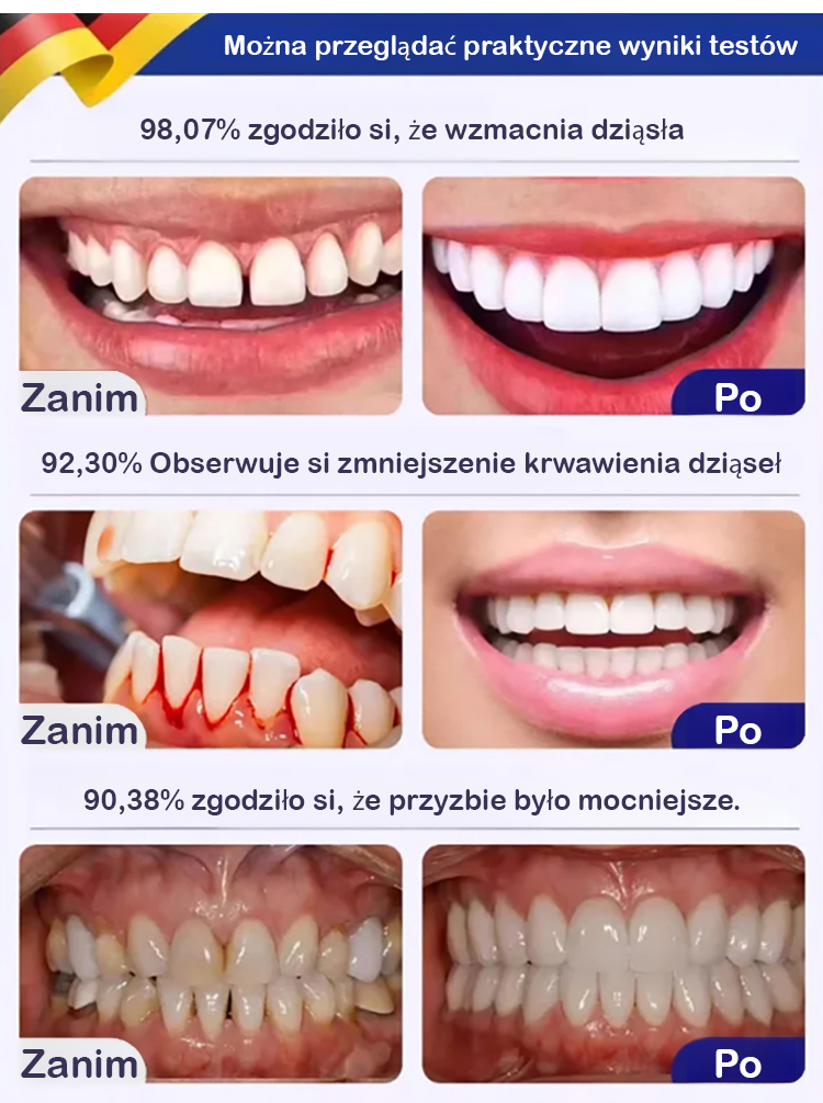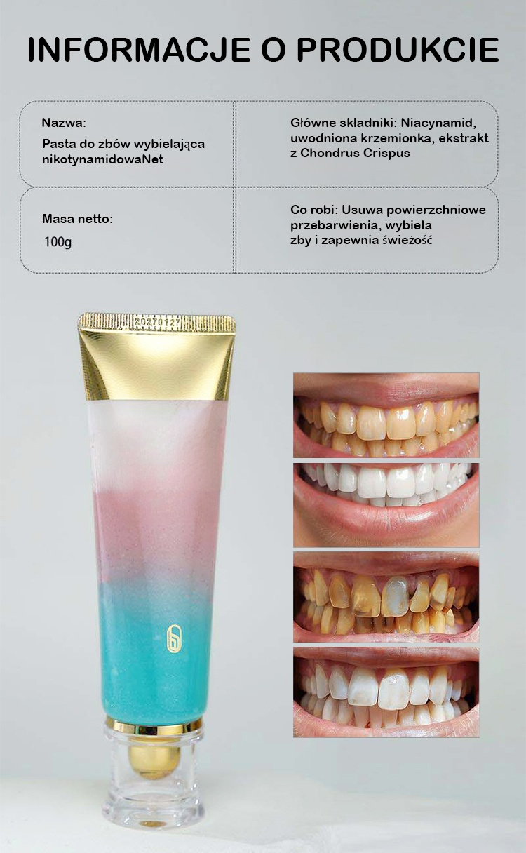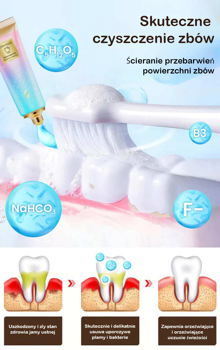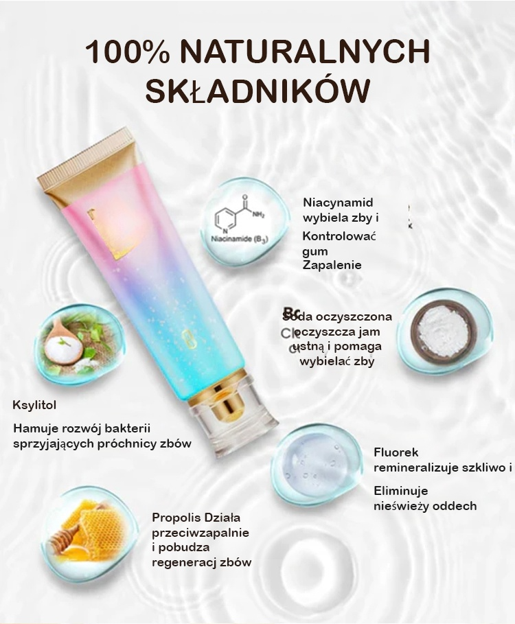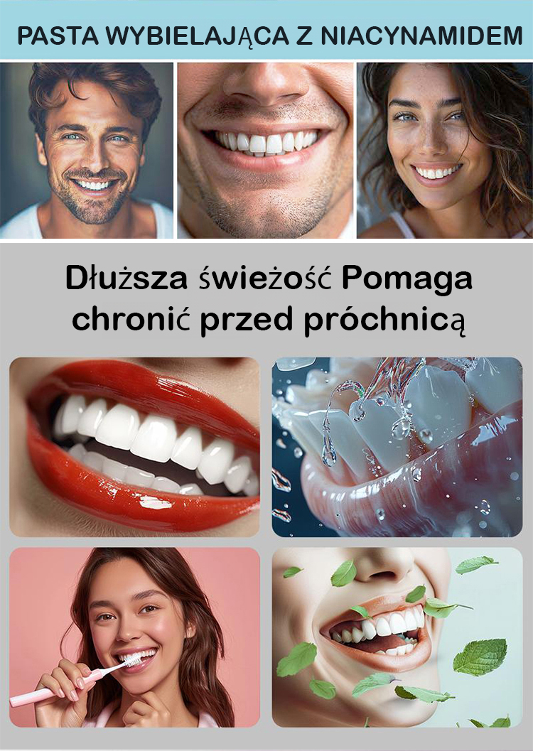 ✅ Certyfikat od Polskiego Stowarzyszenia Stomatologicznego! Opatentowana formuła 'nikotynamid + probiotyki': podwójne działanie wybielające i regenerujące!