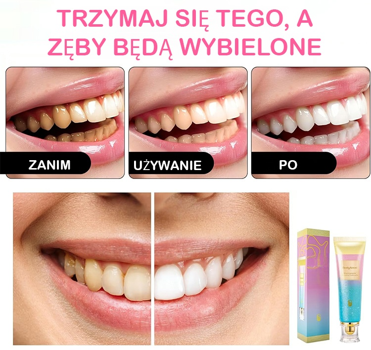 ✅ 0 alkoholu / 0 barwników / 0 fluorków - testowane w ciągu dwóch tygodni, rozjaśnia nawet o 5 odcieni, idealne dla wrażliwych dziąseł