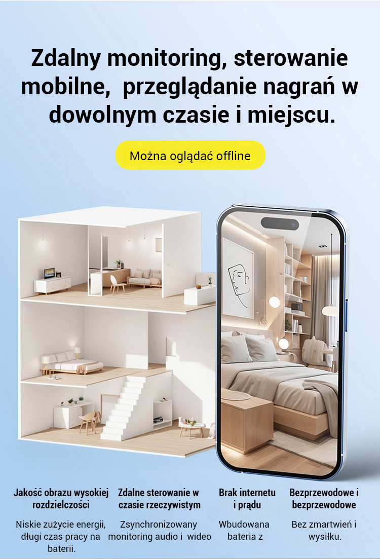 Zainstaluj ją w dowolnym miejscu – NIE WYMAGA ZASILANIA ani INTERNETU!