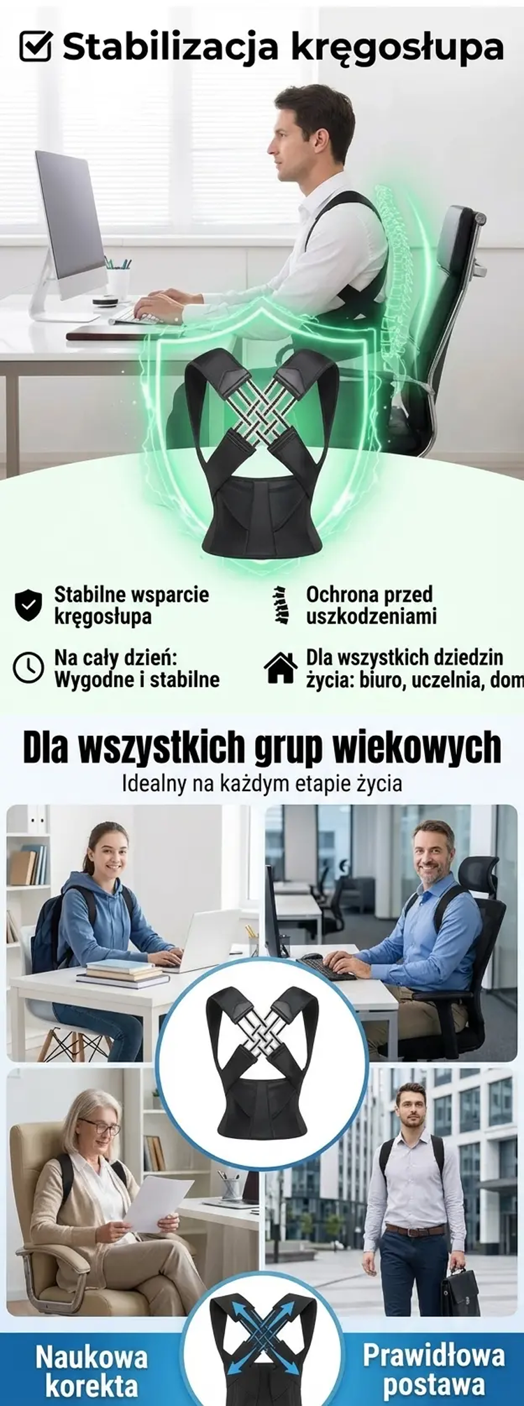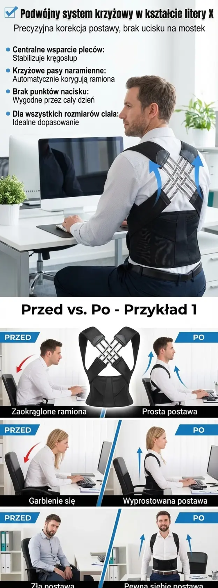 Pas korekcyjny zapobiegający garbieniu się